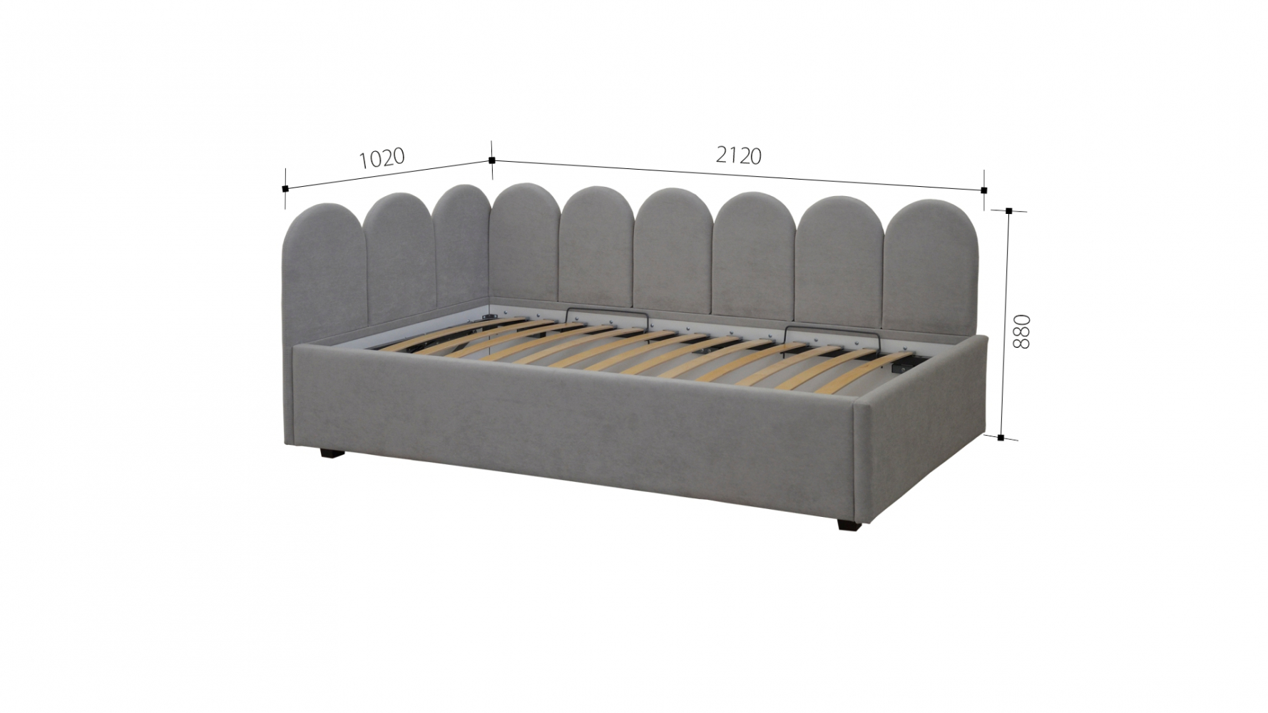 ДхВхШ: 2120х880х1020 мм / Спальное место: 2000х900